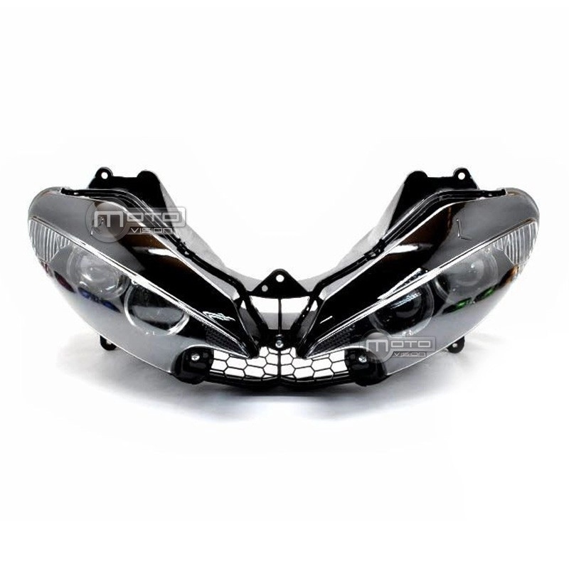 Feu avant Yamaha R6 2003-2005 type origine, idéal pour remplacer votre optique de phare rayé ou endommagé. Doté d'une très belle finition, cet optique avant Moto Vision reprend le design et la position du phare d'origine de votre moto. Le feu ne nécessite pas de modification pour le montage sur votre moto.