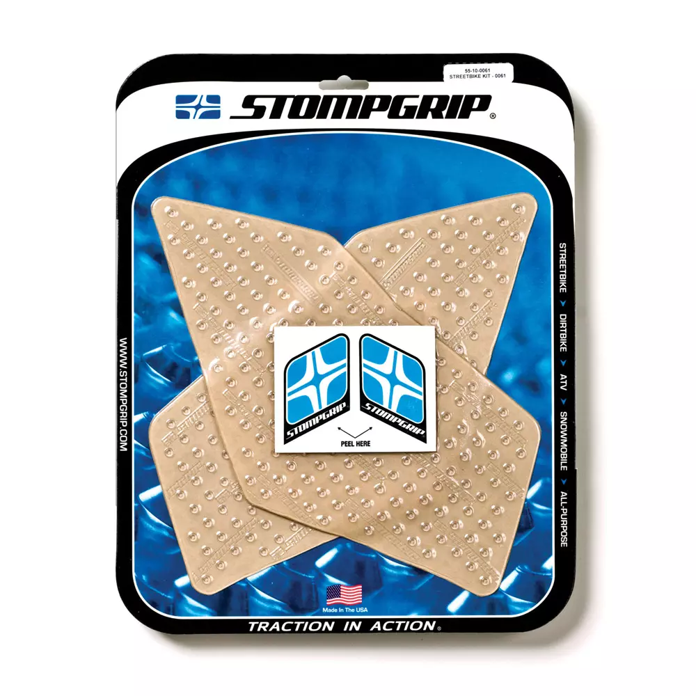Améliorez le contrôle de votre moto en y apposant des protections de réservoir antidérapantes adhésives de la marque Stompgrip.