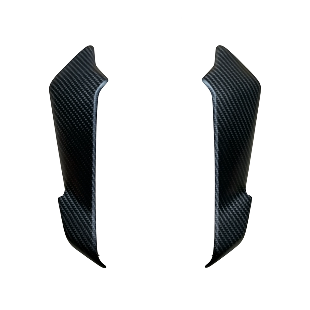 Les pièces sont en carbone véritable (couche externe carbone, couches internes en fibre de verre). Vernis anti‑UV de qualité et intérieur noir mat pour une finition soignée.