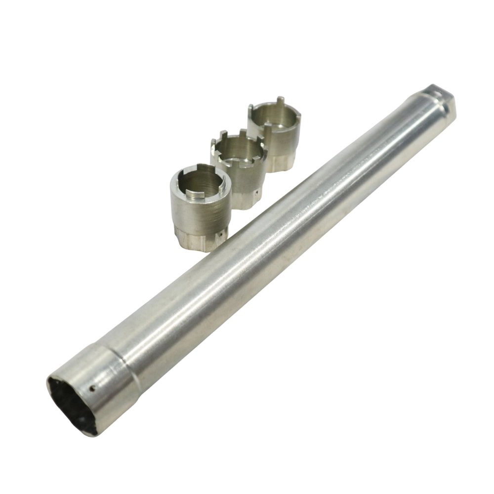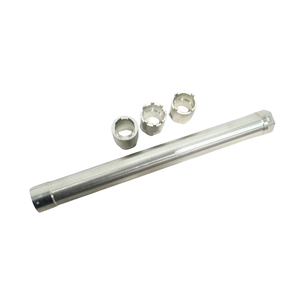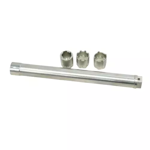 Outil d’extraction et de maintien du barillet interne pour cartouches Öhlins / KYB. Permet de déposer et remonter proprement sans marquer les pièces.