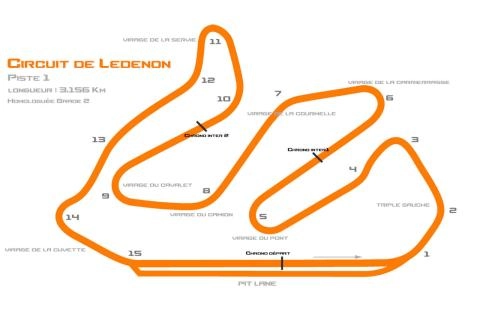 Le tour de circuit se termine par la ligne droite toute en montée qui démontre que pour faire un bon temps à Lédenon, il faut avoir un minimum de puissance et de couple. Complexe et complet, ce circuit demande, peut être plus que tout autre, au pilote d'être efficace dans tous les domaines. Voir plus d'informations sur le descriptif des virages de Lédenon sur le site Accès Piste.