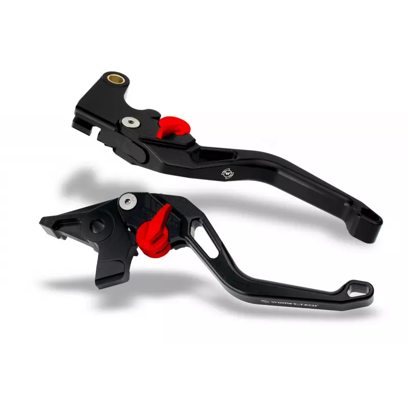 Leviers de frein et d'embrayage courts Womet-Tech KTM 690 Duke R en aluminium, taillés dans la masse. Les 6 positions de réglage vous donnent la possibilité d'obtenir un dosage optimal.