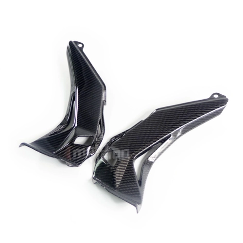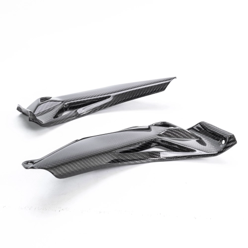 Caches dans tête de fourche Carbone Kawasaki ZX10R 2016-2020, livré sans visserie ou autres fixations. Les perçages sont déjà effectués sur les carénages moto en carbone.
