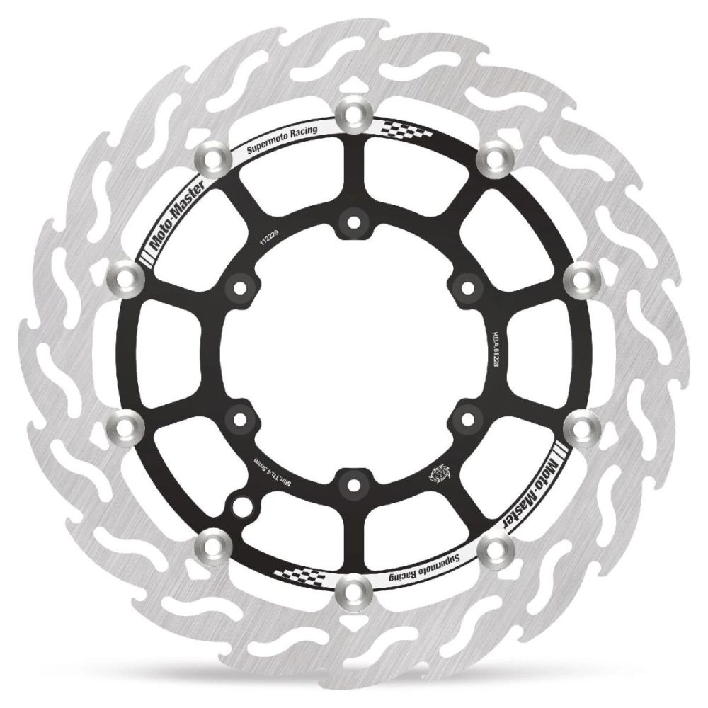 - Le support interne est une pièce anodisée en aluminium et l'épaisseur du disque a été augmentée à 5mm, au-delà des disques Standard Supermoto Moto-Master