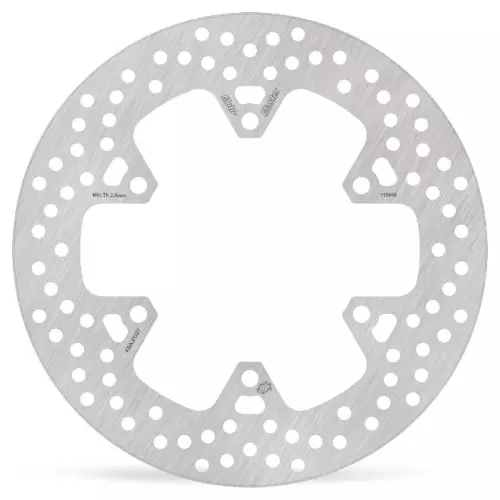 Le disque de frein est conçu avec un diamètre intérieur de 115,0 mm, un diamètre extérieur de 245 mm, fixation (perçage) avec 6 trous, épaisseur 4.0 mm, matière : acier inoxydable.