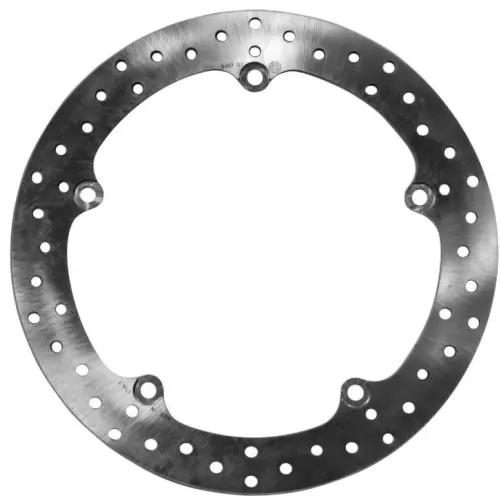 Disque de frein Brembo 68B407G7 Serie Oro version Fixe. Fabriqué d’une seule pièce en acier inoxydable avec motif de perçage spécifique pour une meilleure dissipation thermique.