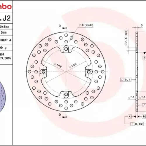 Spécificités techniques du disque de frein Brembo 68B407J2