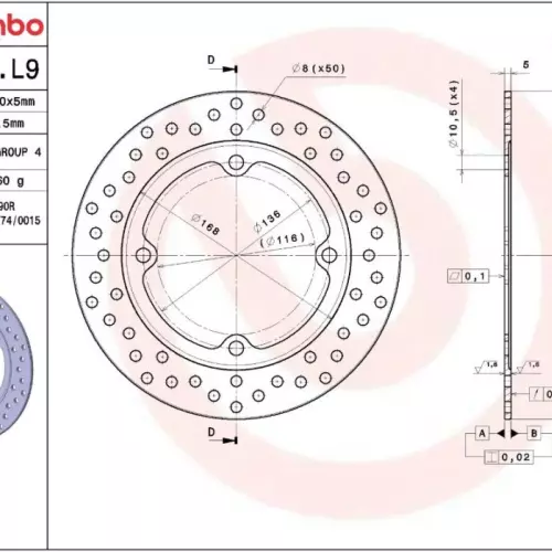 Spécificités techniques du disque de frein Brembo 68B407L9