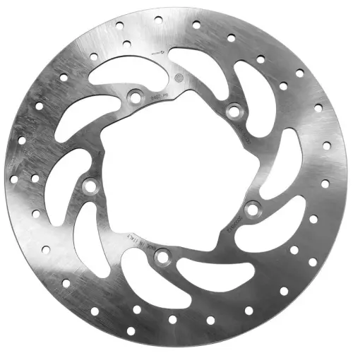 Disque de frein Brembo 68B407P9 Serie Oro version Fixe. Fabriqué d’une seule pièce en acier inoxydable avec motif de perçage spécifique pour une meilleure dissipation thermique.