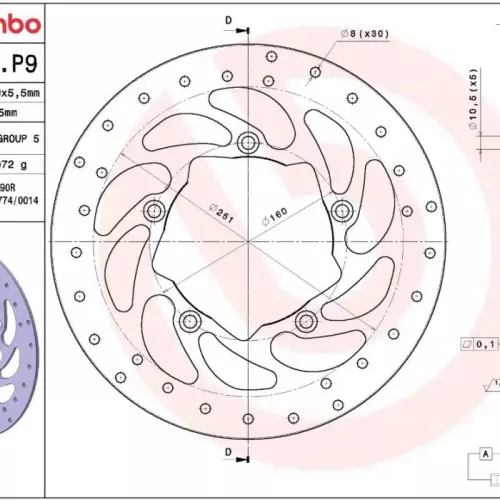 Spécificités techniques du disque de frein Brembo 68B407P9