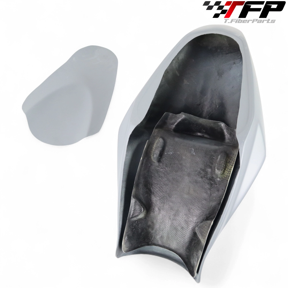 - 2 propositions pour les coques arrière : 1 coque fermée pour rouler sur la piste avec collage d'une mousse de selle ou 1 coque qui conserve la selle d'origine pour la plupart des motos