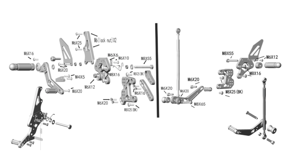 Chaque produit Kaylosa est pensé pour s'adapter à des modèles de moto spécifiques afin de vous garantir une installation facile et une utilisation optimale. Les commandes reculées sont déjà assemblées à 80% pour un montage simplifié. La rigidité du produit est améliorée grâce à un poids à partir de 900g qui est correctement réparti. L'embout de cale-pied en Téflon ce qui réduit fortement le risque de coupure en cas de chute.