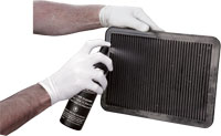 - Etape 2 : Laver le filtre en le rinçant avec de l'eau fraiche à basse pression dans le sens inverse du passage de l’air afin de faire partir la saleté. Continuer de rincer jusqu'à ce que toutes les traces du nettoyant aient disparu.