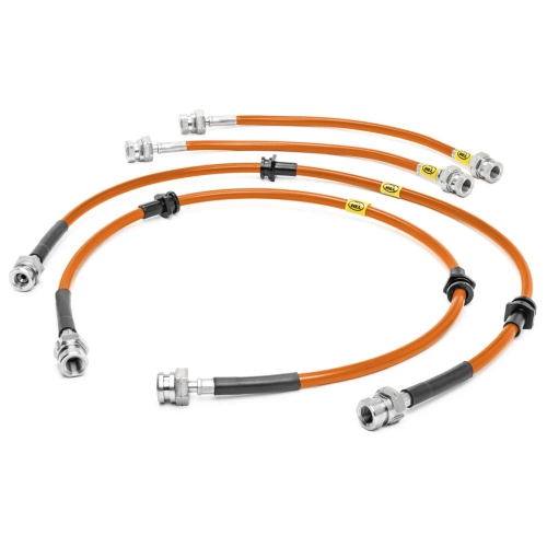 Sostituzione identica al sistema originale, con 3 tubo anteriore e 1 posteriore (non-ABS) per una perfetta frenata da pista.