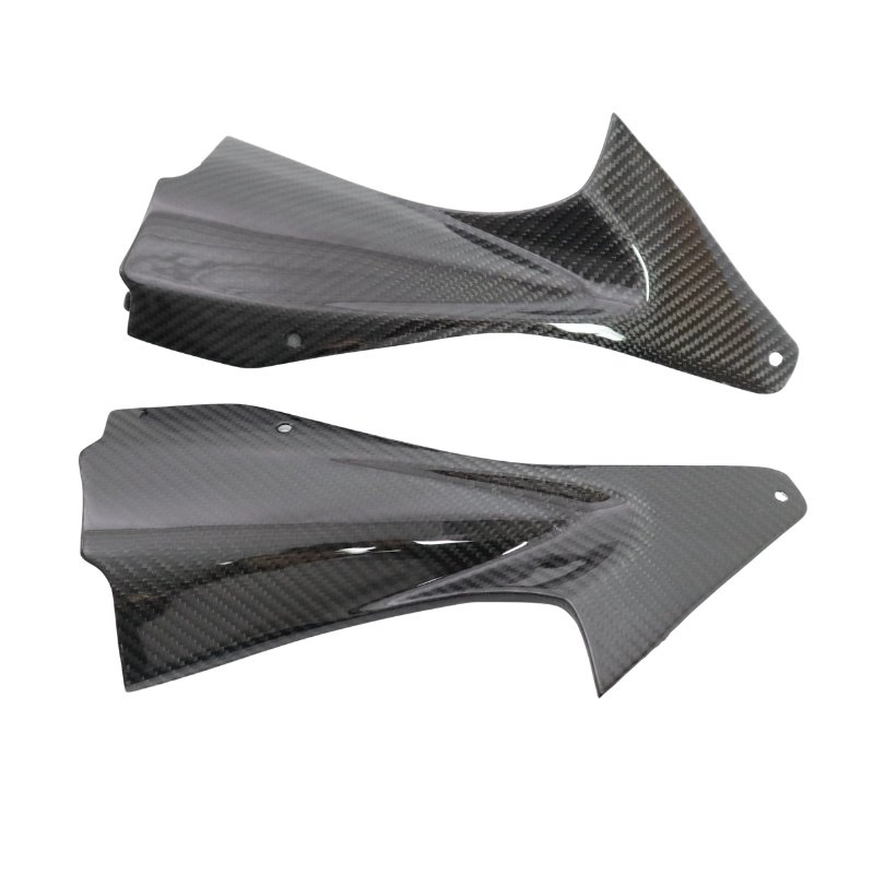 Protezioni canali aria Carbone Yamaha R6 2006-2007 consegnato senza viti o altri fissaggi. I fori sono già praticati sulle carenature per moto in carbonio. I pezzi sono disponibili con vernice lucida o opaca.