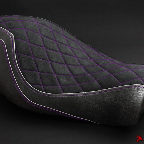 Copri sella Couvre selle Harley Davidson Sportster Iron 883 Luimoto di alta qualità, prodotto in Canada. Il marchio disegna prodotti con una finitura superba: ricami dettagliati, vinile blu, tessuto stile carbonio o pelle scamosciata di alta qualità... Il design e i colori sono personalizzati per abbinare il look della tua moto.