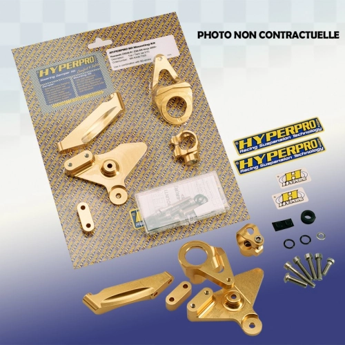 Hyperpro sviluppa kit di montaggio per montare facilmente l'ammortizzatore di sterzo sulla moto. Plug and play, nel 98% dei casi è possibile montare il kit senza forare o tagliare la moto. Ogni kit di montaggio è stato sviluppato specificamente per le moto indicate come compatibili.