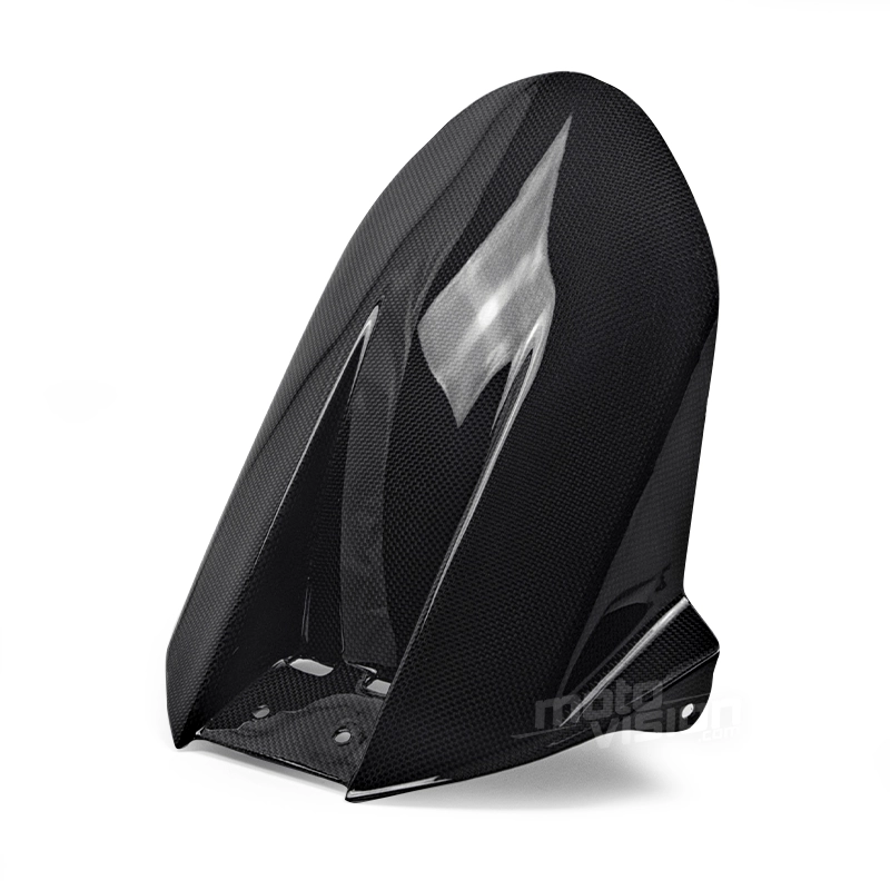 Guardabarros trasero en carbono Kawasaki ZX10 ZX10R 2004-2005 da montare direttamente sui punti di fissaggio originali della moto per sostituire la carenatura originale. Le parti in carbonio vengono fornite senza viti e bulloni.