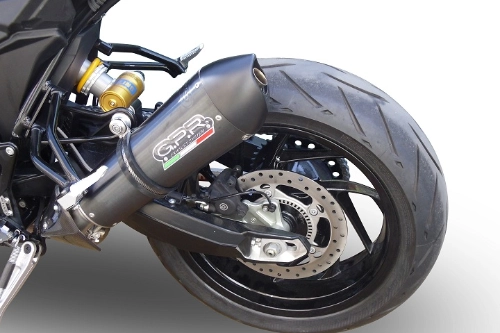 Il silenziatore Furore Nero di GPR ha un corpo in alluminio nero, con tappi avional realizzati tramite lavorazione CNC. Ha una finitura ceramica che resiste alle alte temperature, con una forma ellittica che misura 90mm x120mm. Questo kit comprende il tubo lnik specifico o semicollettore con staffe e accessori specifici adeguati. Ciò consente l'installazione senza alcuna modifica strutturale. Si tratta di un prodotto GPR originale, sviluppato dopo l'esperienza GPR nel Campionato del Mondo. Offre un design innovativo, prestazioni migliorate, risparmio di peso e un suono corposo. Peso: 1,84 Kg