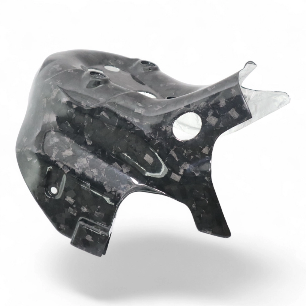 Protector colector escape en carbono brillante Ducati 899 1199 Panigale después 2014 da montare direttamente sui punti di fissaggio originali della moto per sostituire la carenatura originale. Le parti in carbonio vengono fornite senza viti e bulloni.