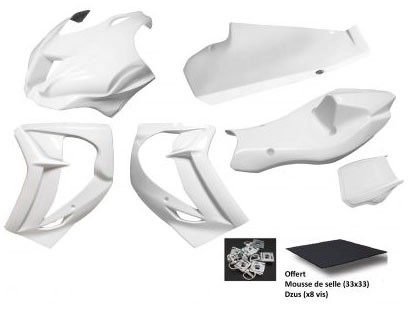 Kit completo carena KAWASAKI ZX10R 2016 - ... in fibra di vetro intrecciata con rinforzi in kevlar. Il prodotto si monta facilmente sulla moto grazie alla marcatura dei punti di foratura e alla buona finitura della carenatura.