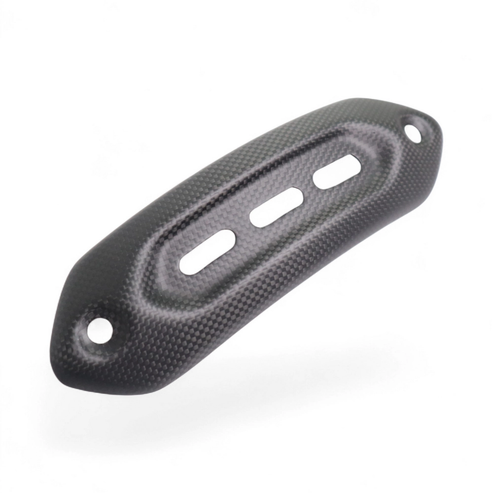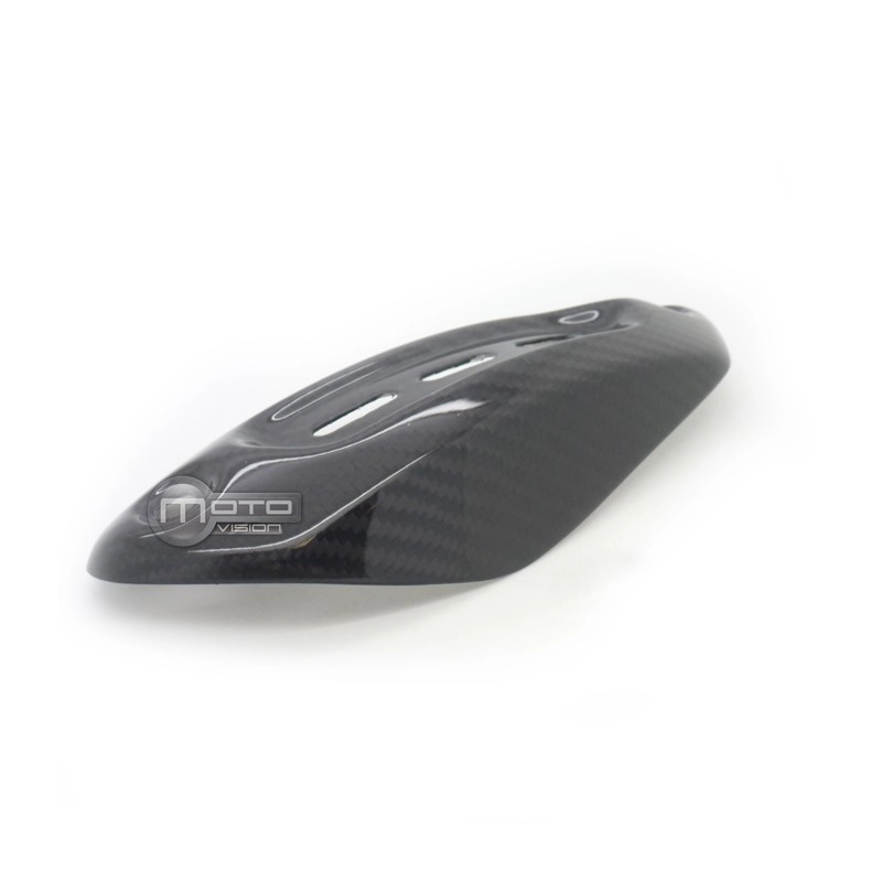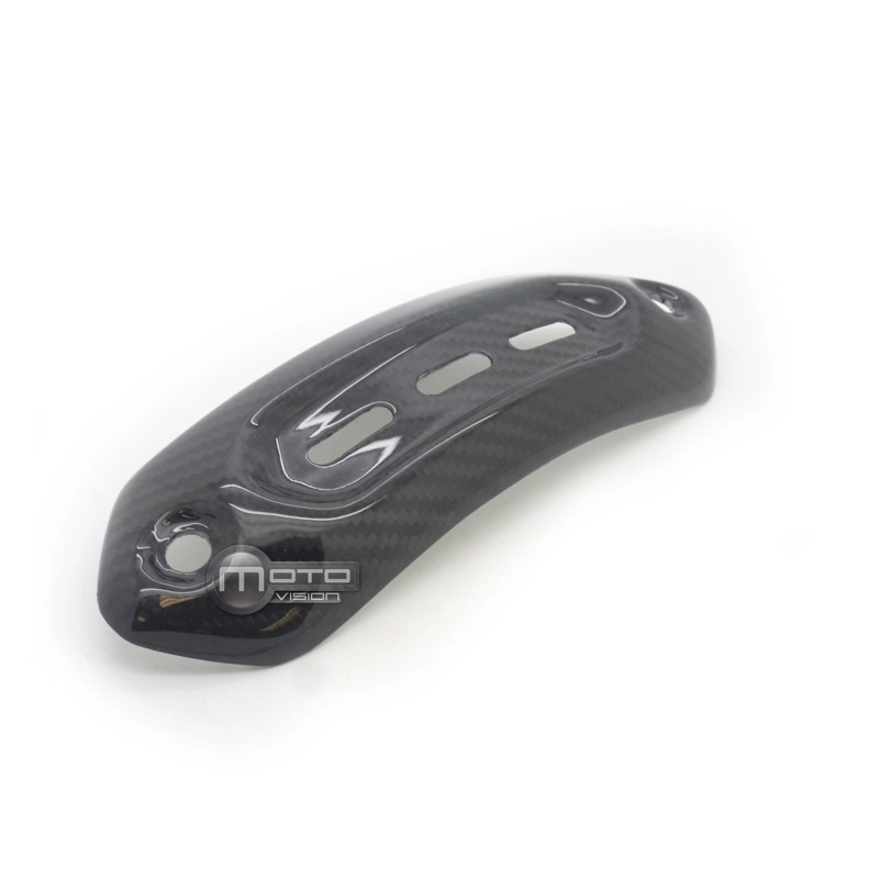 Protector colector escape en carbono Ducati Hyperstrada Hypermotard 2013- da montare direttamente sui punti di fissaggio originali della moto per sostituire la carenatura originale. Le parti in carbonio vengono fornite senza viti e bulloni.