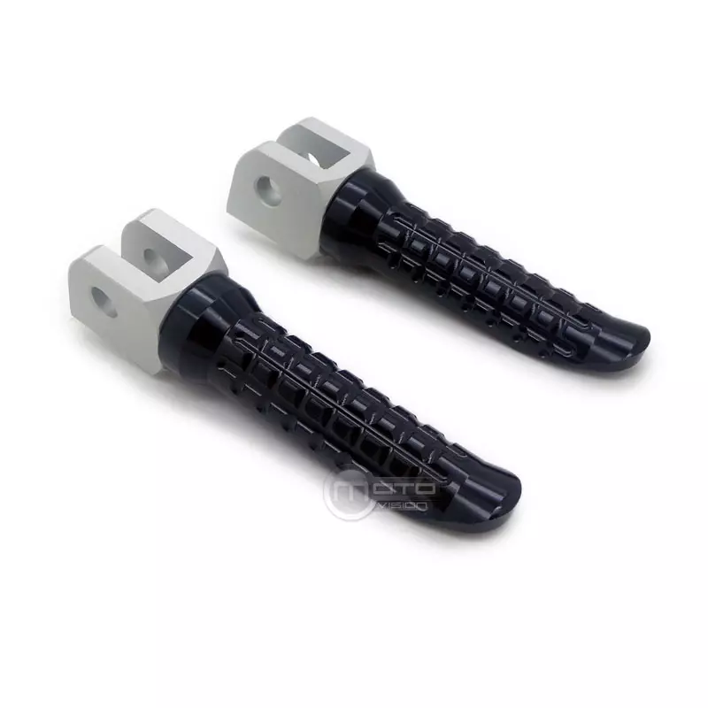 Questa coppia di pedane di ricambio in alluminio lavorato a CNC è ideale per sostituire le pedane della vostra Yamaha FZ 1 Fazer R1 Thunderace BT XJR FJR FZ6 FZS XJ6 XJ R6 MT03 SRZ MT07 R. È progettato per la parte anteriore della bicicletta, al posto delle pedane del pilota.