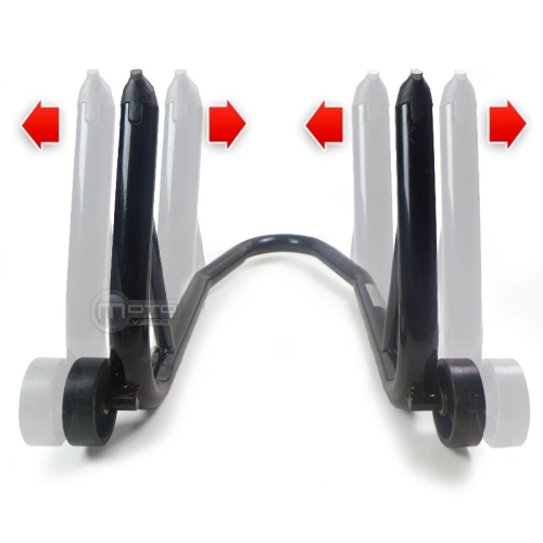 Il cavalletto conviene a tutte le moto, tutte le marche grazie alle sue forcelle che vanno nelle rotelle. Il fissaggio si fa con una vite