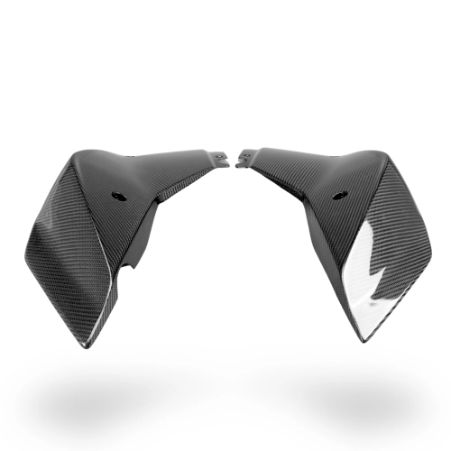 Carenados laterales carbono KTM DUKE 690 2012-2015 da montare direttamente sui punti di fissaggio originali della moto per sostituire la carenatura originale. Le parti in carbonio vengono fornite senza viti e bulloni.