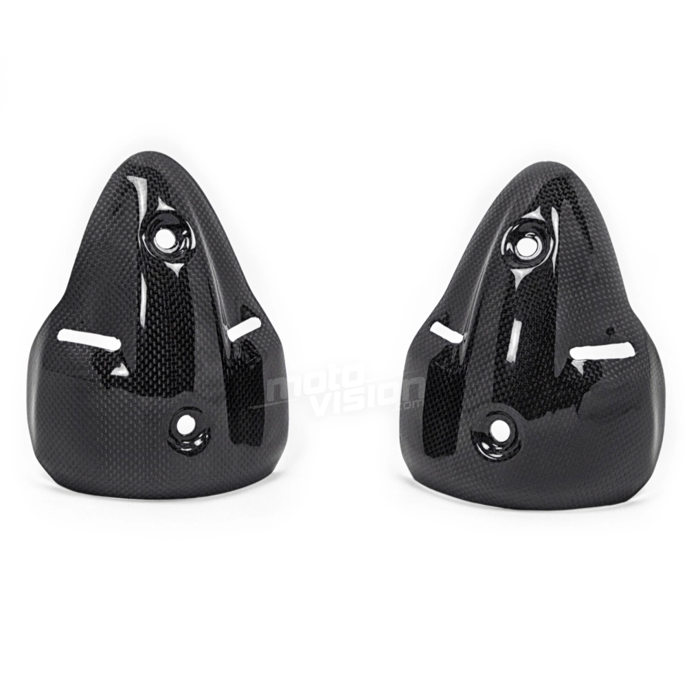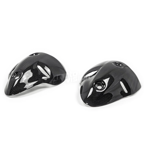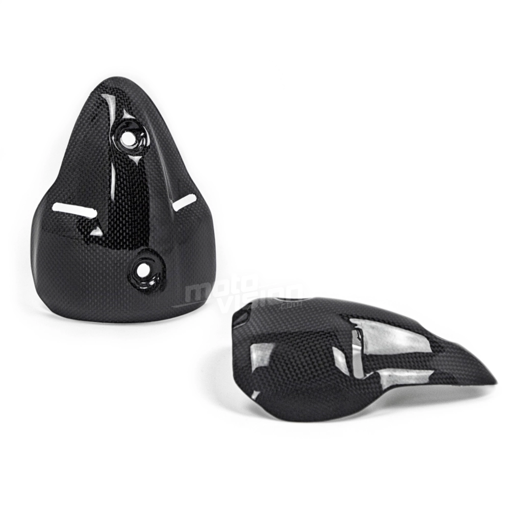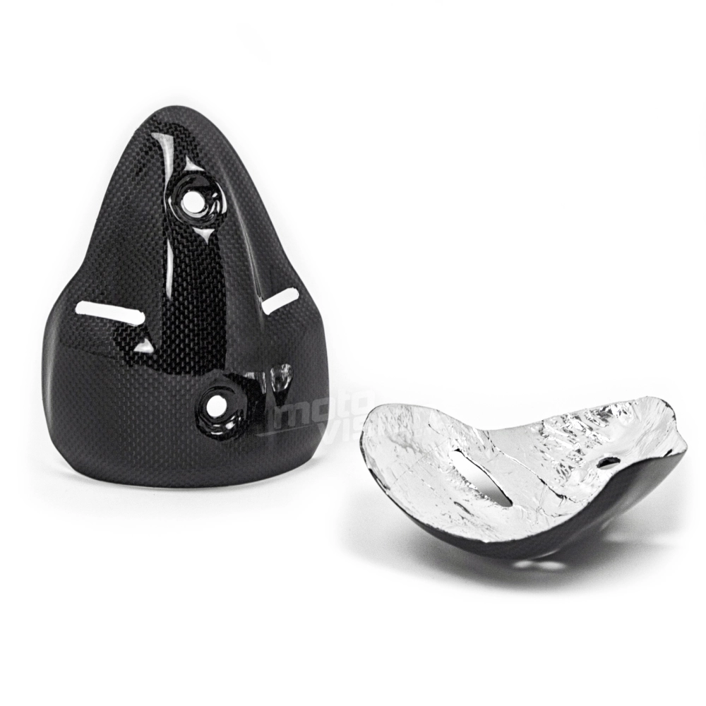 Paracalore silenziatore Carbone Ducati Monster 696 1100 1100S consegnato senza viti o altri fissaggi. I fori sono già praticati sulle carenature per moto in carbonio. I pezzi sono disponibili con vernice lucida o opaca.
