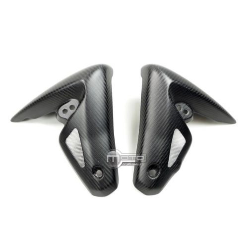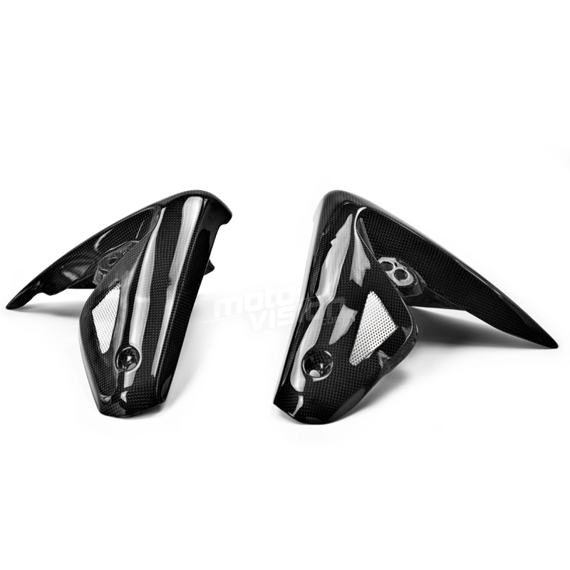 Protectores laterales radiador en carbono Triumph Speed Triple 1050 da montare direttamente sui punti di fissaggio originali della moto per sostituire la carenatura originale. Le parti in carbonio vengono fornite senza viti e bulloni.