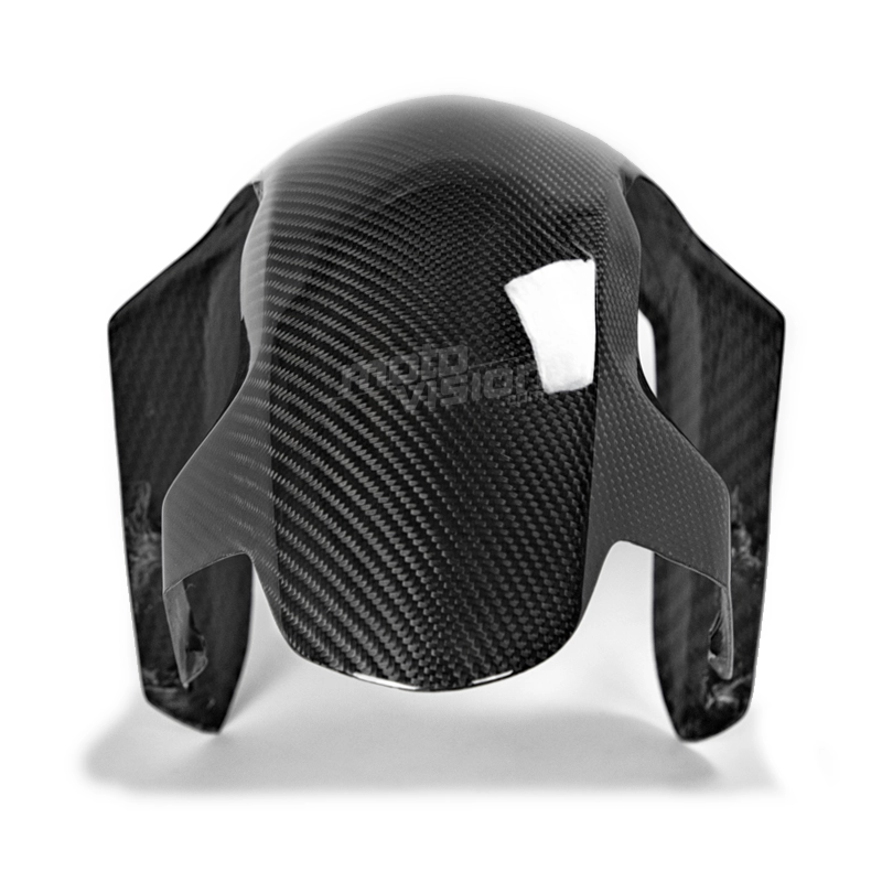 Parafango carbone KTM Superduke 1290 /R/GT 2012-2018 consegnato senza viti o altri fissaggi. I fori sono già praticati sulle carenature per moto in carbonio. I pezzi sono disponibili con vernice lucida o opaca.