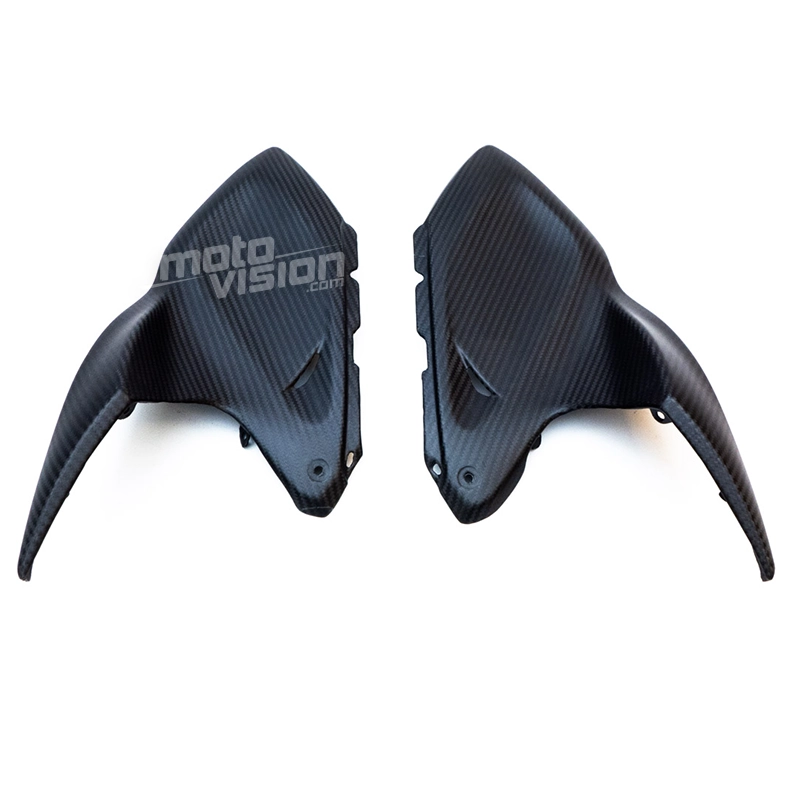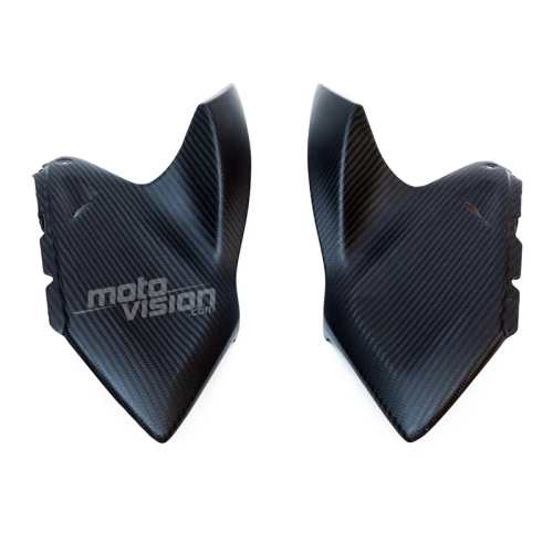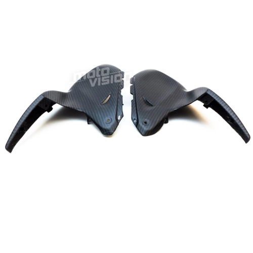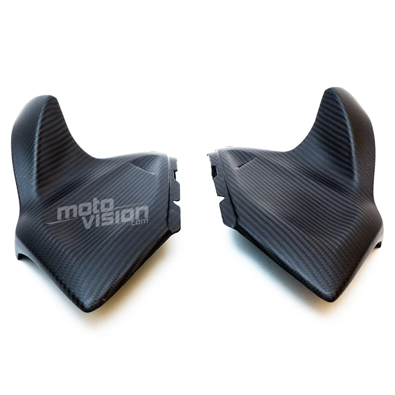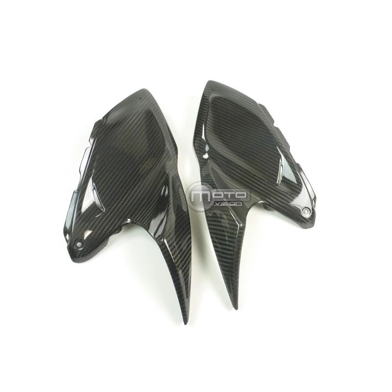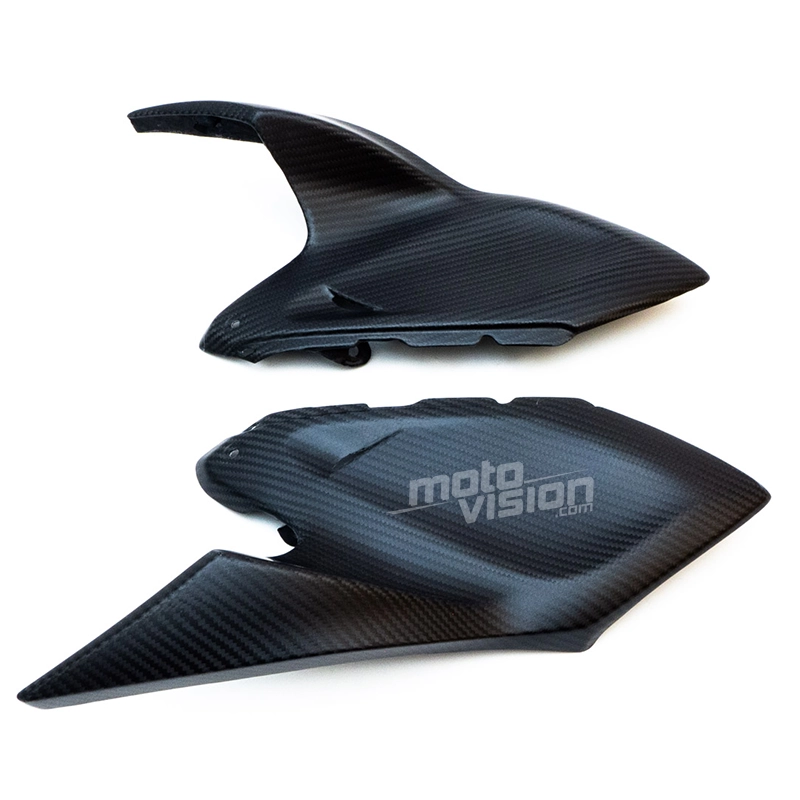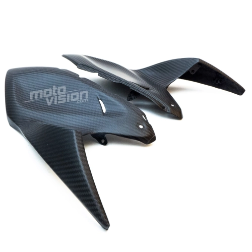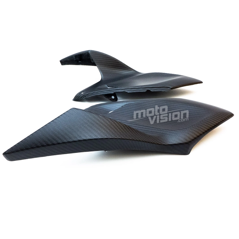 Tapas superiores laterales parte trasera en carbono Kawasaki Z1000 2014-.. da montare direttamente sui punti di fissaggio originali della moto per sostituire la carenatura originale. Le parti in carbonio vengono fornite senza viti e bulloni.