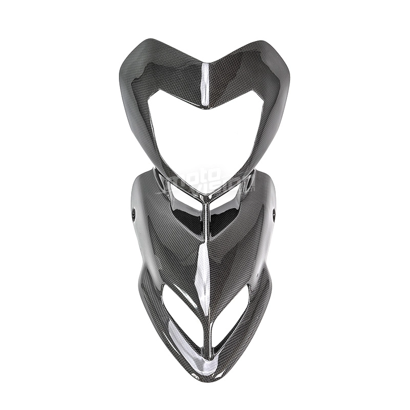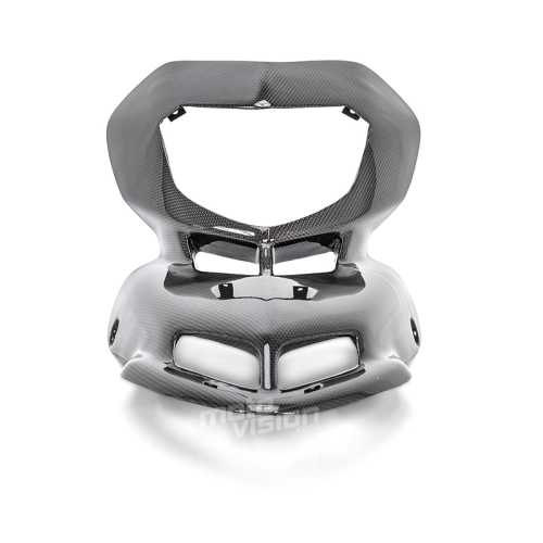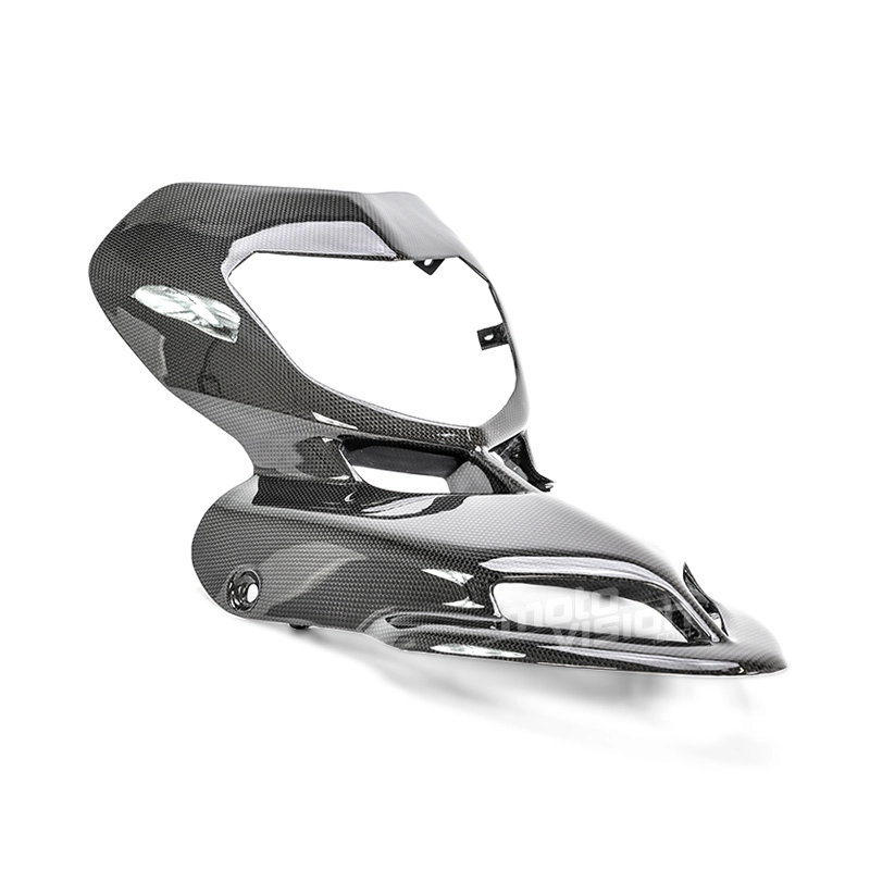 Carenado frontal en carbono Ducati Hypermotard da montare direttamente sui punti di fissaggio originali della moto per sostituire la carenatura originale. Le parti in carbonio vengono fornite senza viti e bulloni.