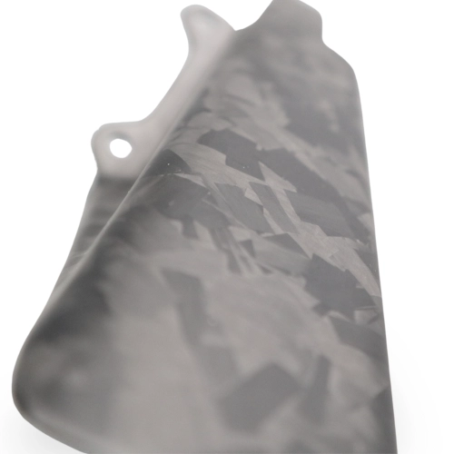 Facilmente riconoscibile per la sua trama molto fine e fitta, che la rende altamente resistente agli urti. Il film viene poi inserito in uno stampo con resina polimerica termoindurente. Asciugandosi, il carbonio assume la sua forma definitiva, producendo un effetto estetico molto apprezzato per le sue linee oblique.