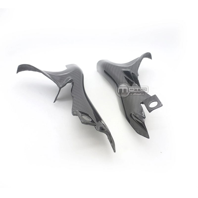 Protector de chasis en carbono Ducati Monster 821 2014-2017 1200 2014-2016 da montare direttamente sui punti di fissaggio originali della moto per sostituire la carenatura originale. Le parti in carbonio vengono fornite senza viti e bulloni.