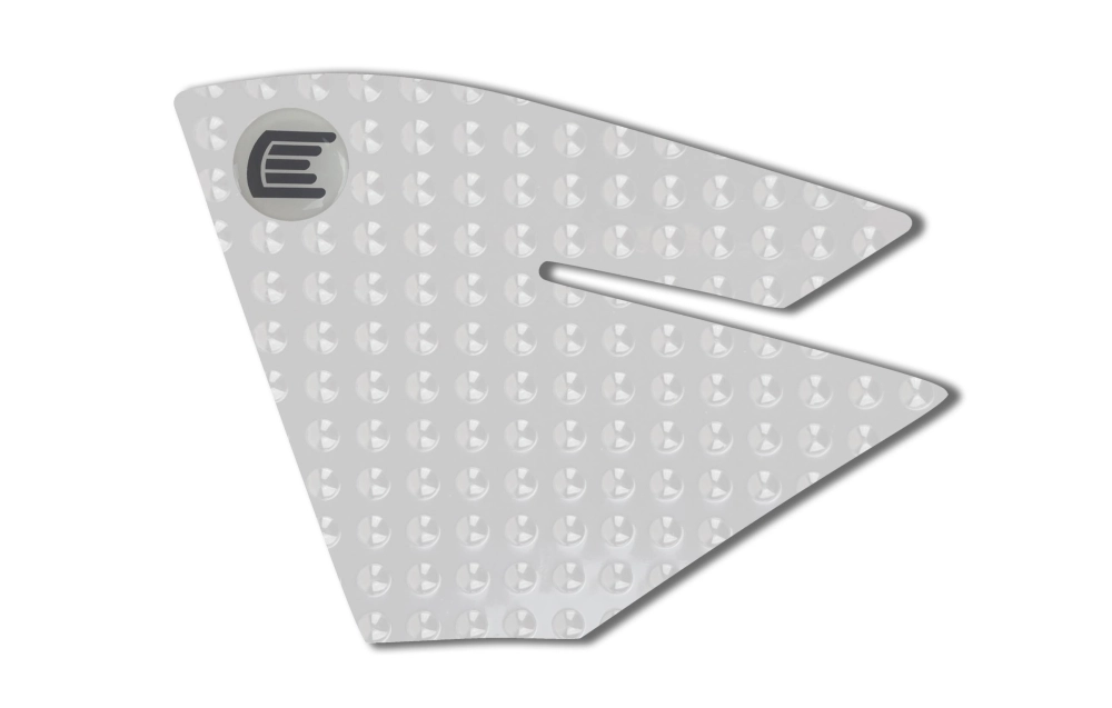 Il grip da serbatoio può essere incollato su qualsiasi superficie (ruvida o verniciata, in metallo o in plastica), inoltre è completamente trasparente (per la versione trasparente) in modo che la vernice sia visibile al 100%.