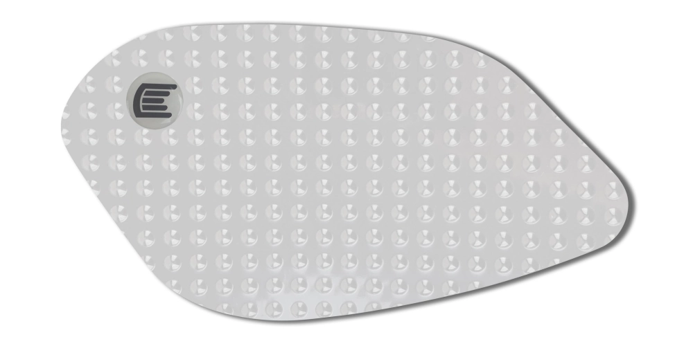 Il grip da serbatoio può essere incollato su qualsiasi superficie (ruvida o verniciata, in metallo o in plastica), inoltre è completamente trasparente (per la versione trasparente) in modo che la vernice sia visibile al 100%.
