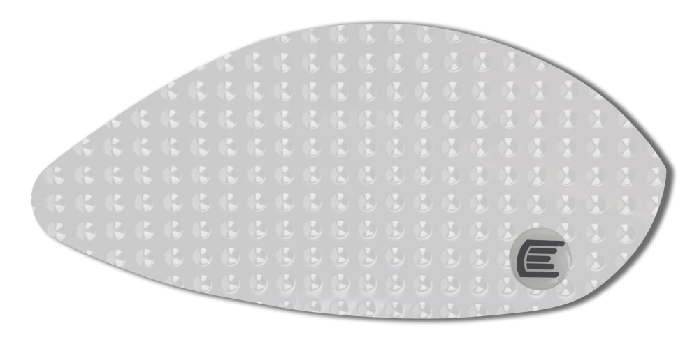 Il grip da serbatoio può essere incollato su qualsiasi superficie (ruvida o verniciata, in metallo o in plastica), inoltre è completamente trasparente (per la versione trasparente) in modo che la vernice sia visibile al 100%.