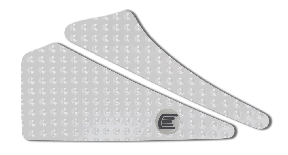 Il grip da serbatoio può essere incollato su qualsiasi superficie (ruvida o verniciata, in metallo o in plastica), inoltre è completamente trasparente (per la versione trasparente) in modo che la vernice sia visibile al 100%.