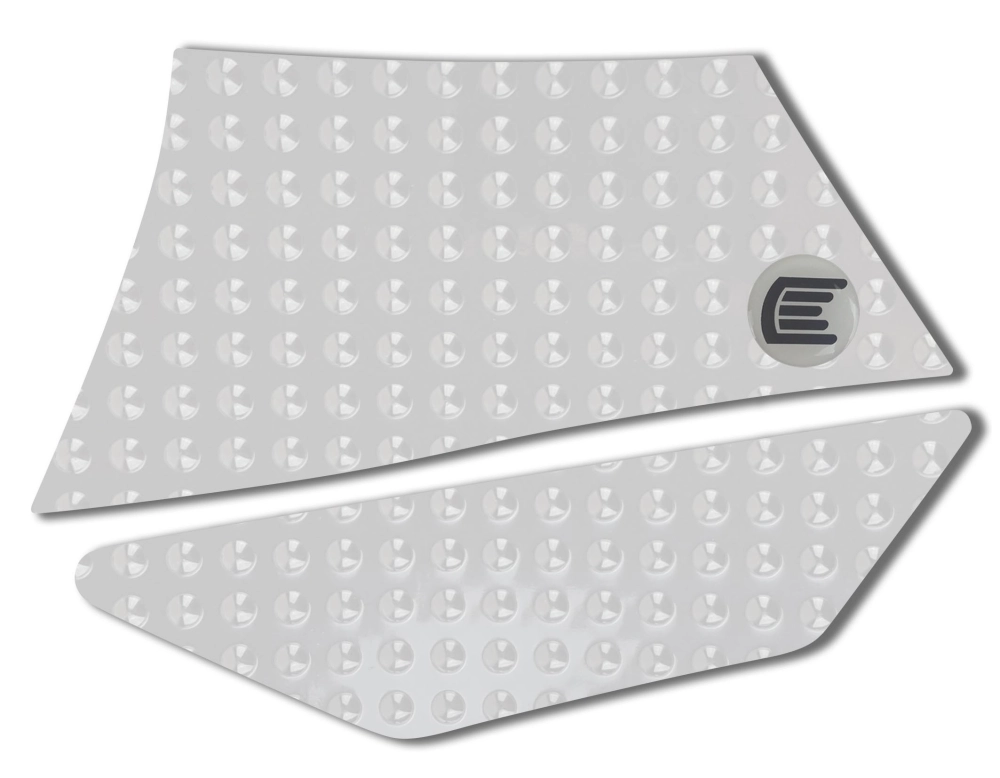 Il grip da serbatoio può essere incollato su qualsiasi superficie (ruvida o verniciata, in metallo o in plastica), inoltre è completamente trasparente (per la versione trasparente) in modo che la vernice sia visibile al 100%.