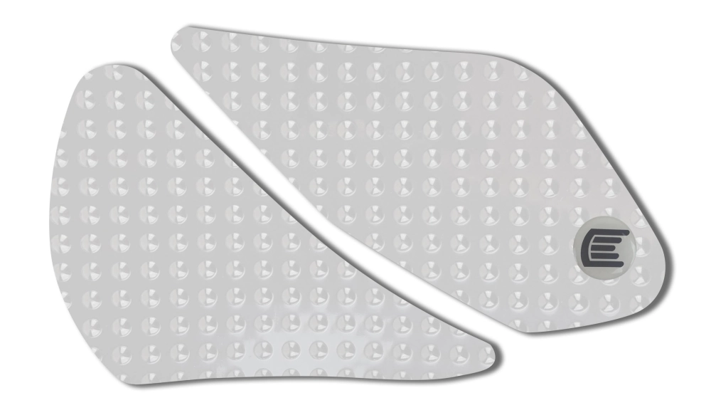 Il grip da serbatoio può essere incollato su qualsiasi superficie (ruvida o verniciata, in metallo o in plastica), inoltre è completamente trasparente (per la versione trasparente) in modo che la vernice sia visibile al 100%.