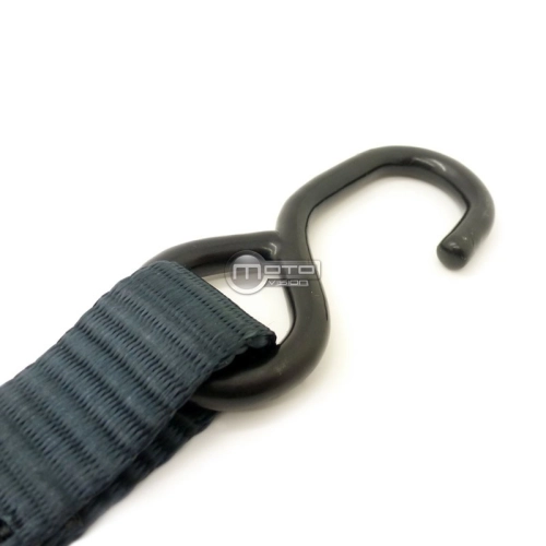 La cinghia di fissaggio è composta da 2 parti, una delle quali è dotata di un dispositivo di bloccaggio. Ogni estremità è dotata di una fibbia a forma di “S” per fissare la cinghia ai ganci di fissaggio di un rimorchio o di un furgone. Dotata di un sistema di fissaggio manuale per una regolazione precisa.