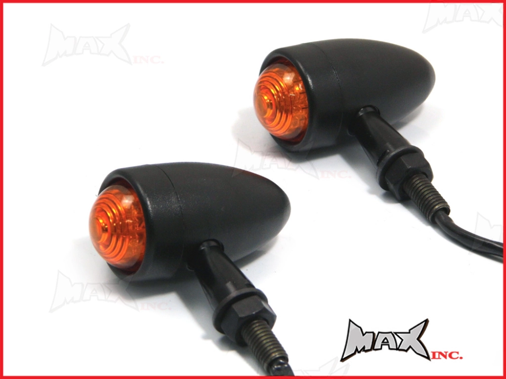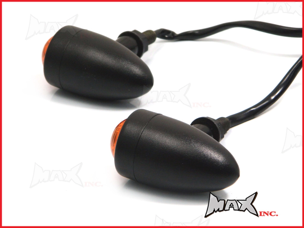 BLACK ALUMINIUM TORPEDO LED TURN SIGNALS / INDICATORS - ORANGE LENSE