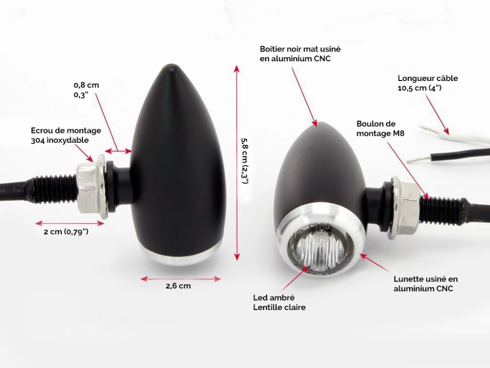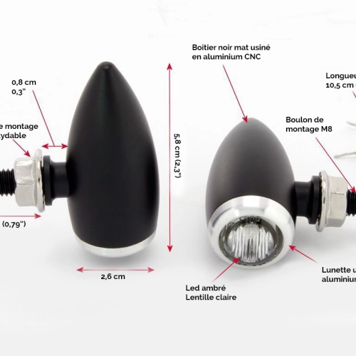 MATTE BLACK + ALUM CNC MACHINED MICRO BULLET LED TURN SIGNAL / INDICATORS - DOT APPROVED