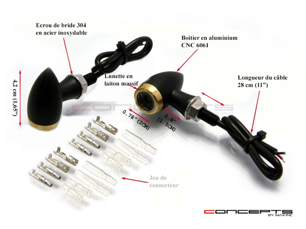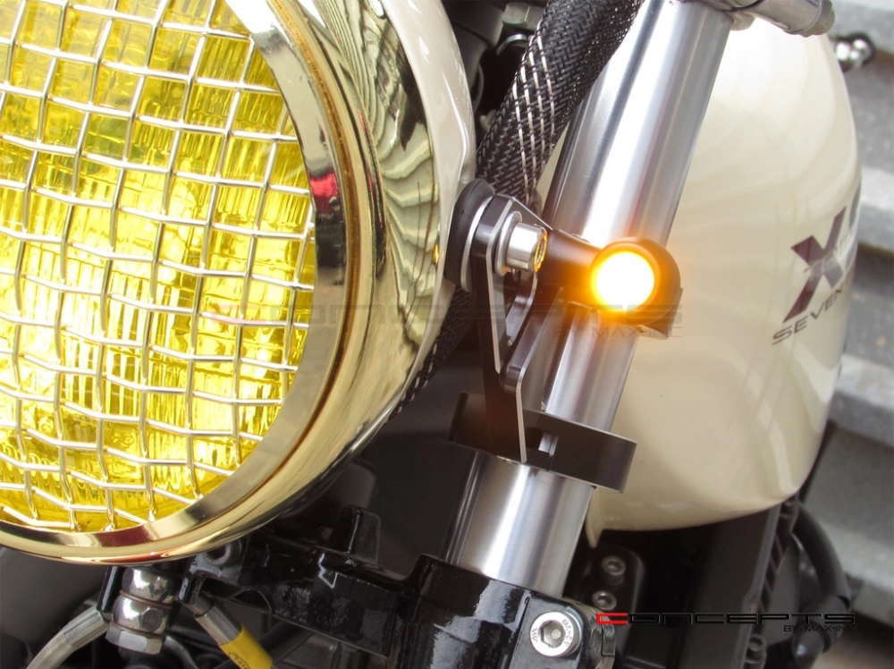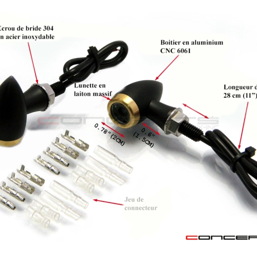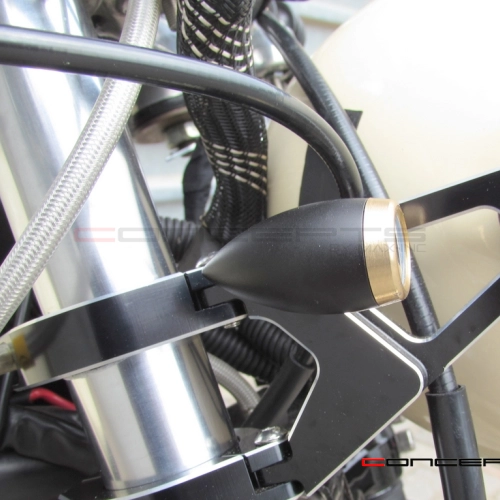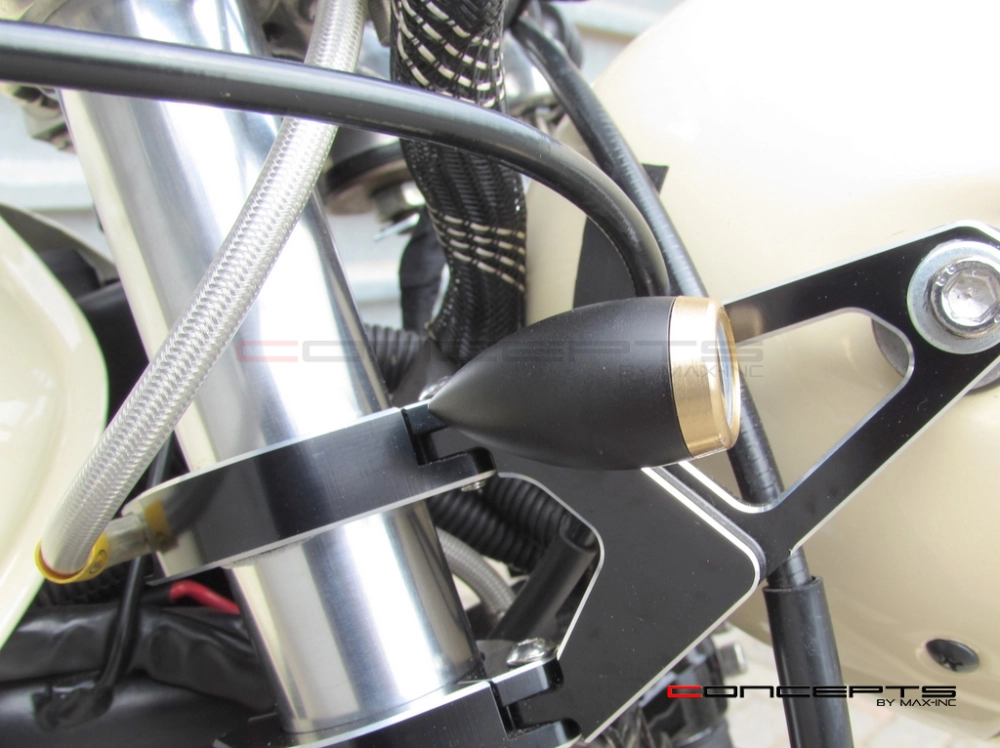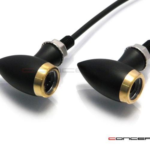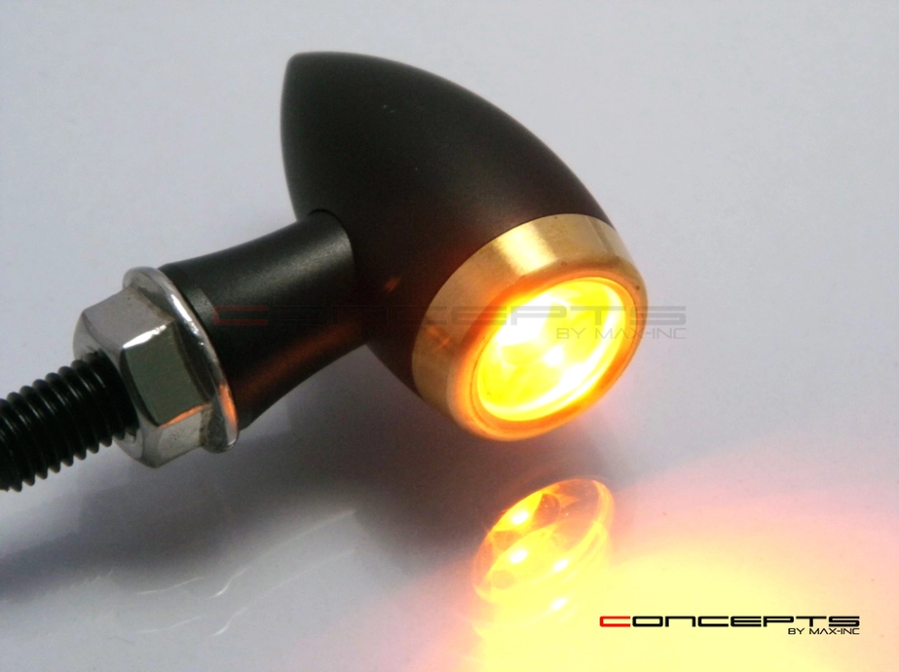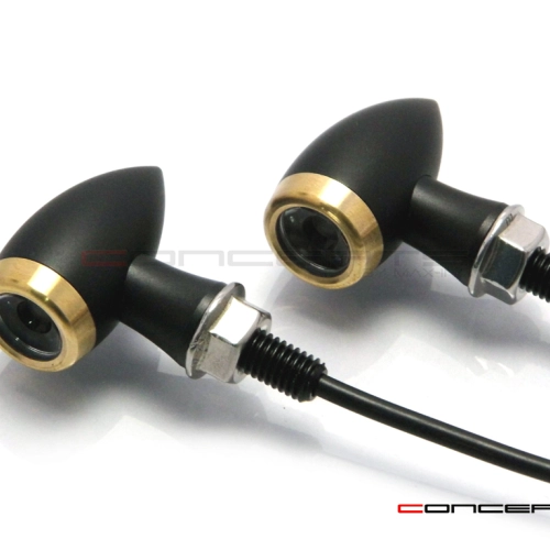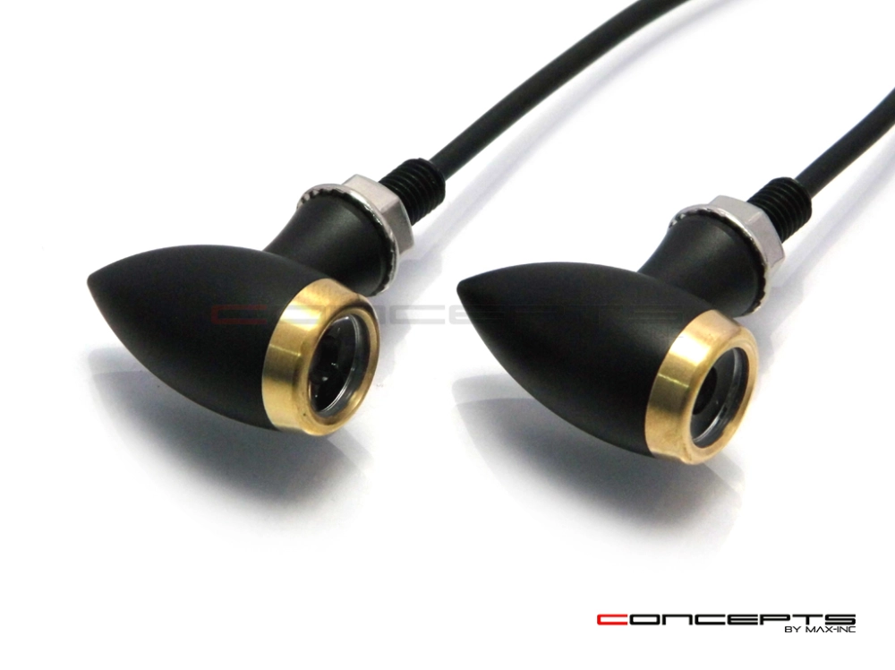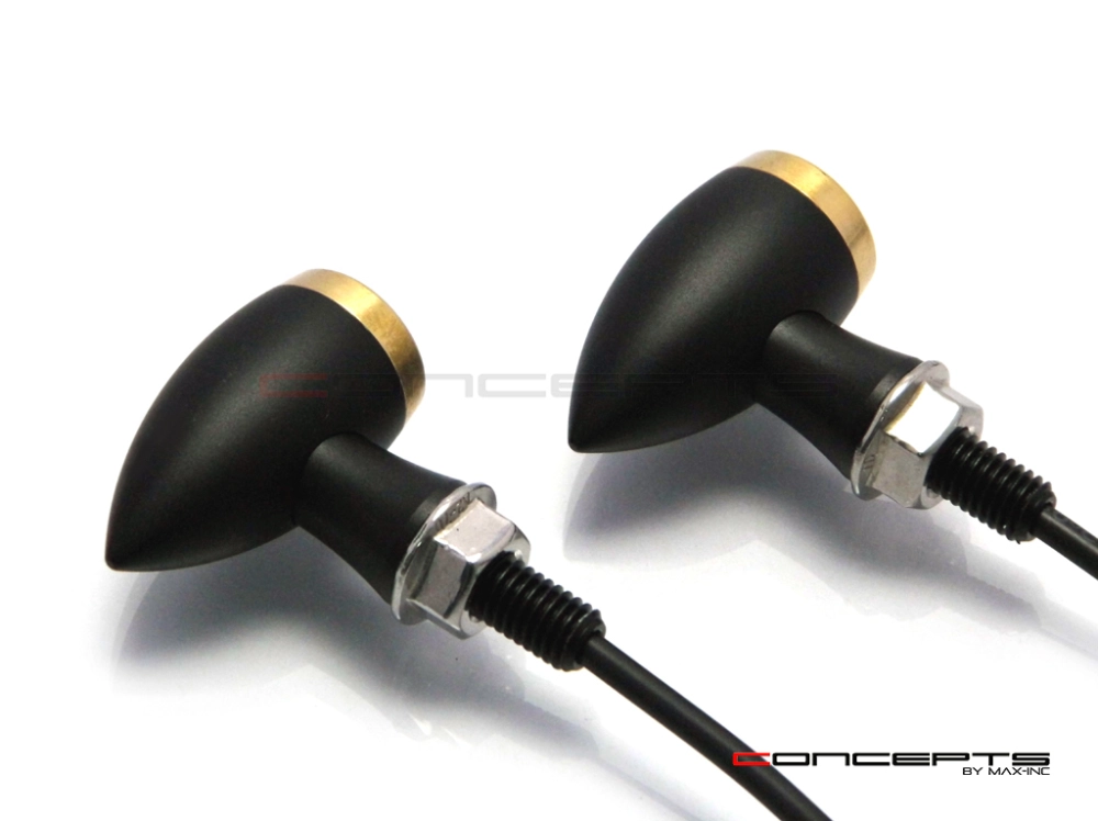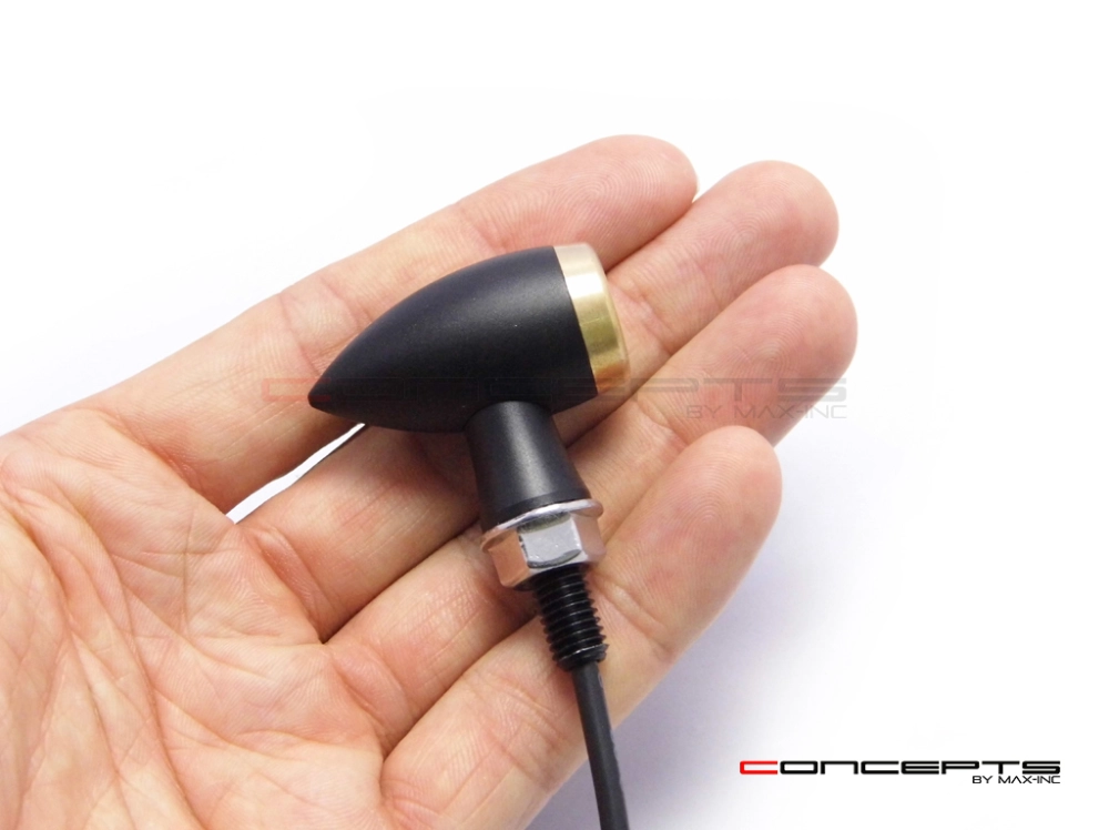 MAX CHUBBY MICRO MACHINED BILLET ALUMINIUM MATTE BLACK + BRASS LED INDICATORS / TURN SIGNALS