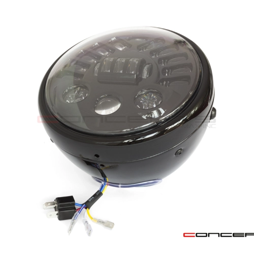 High quality classic style LED headlight with Integrated Amber Turn Signals.