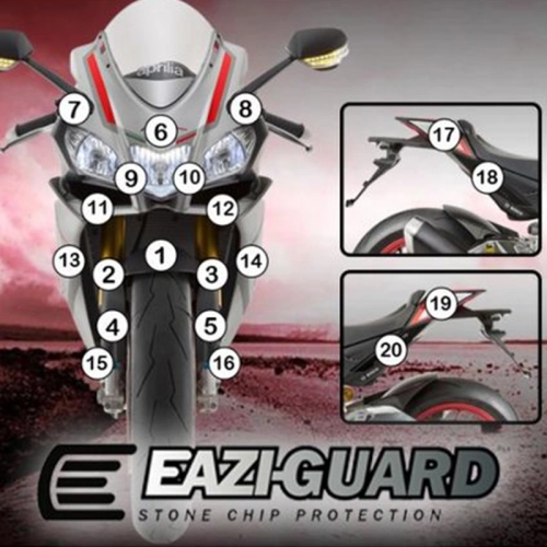 Eazi-Guard stone chip protection tape is an Ultra-Thin, Ultra-Tough, polyurethane protection film, designed to protect your bike and virtually eliminate damage. The unique properties of our Polyurethane Protection tape enable it to disperse the impact energy of gravel and small stones, bouncing them off and leaving your bodywork untouched beneath.
