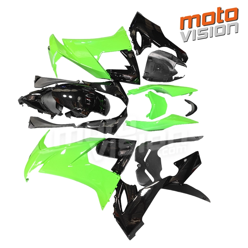 Il kit ABS carenatura verniciata per Kawasaki ZX10R 2008-2010 è verniciato come mostrato nelle immagini. Viene consegnato senza stickers, viti e Parabrezza.