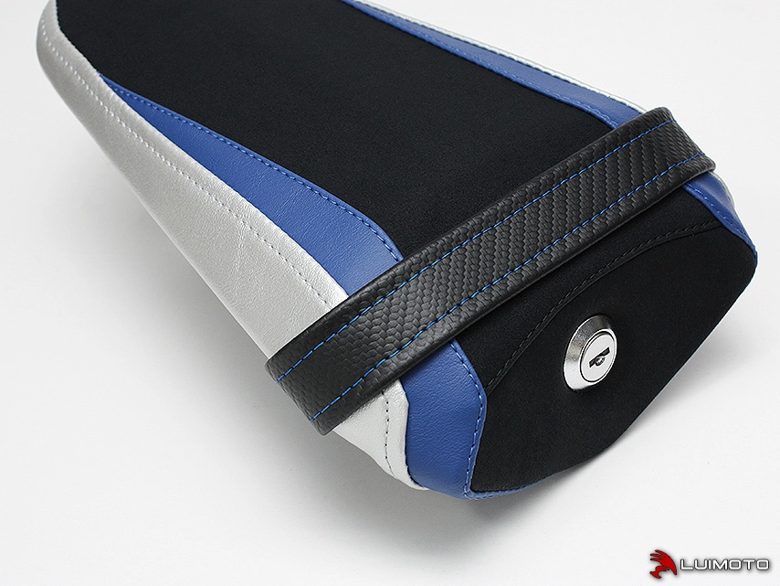 Copri sella Yamaha R6 17-18 Coutures vertes Luimoto di alta qualità, prodotto in Canada. Il marchio disegna prodotti con una finitura superba: ricami dettagliati, vinile blu, tessuto stile carbonio o pelle scamosciata di alta qualità... Il design e i colori sono personalizzati per abbinare il look della tua moto.